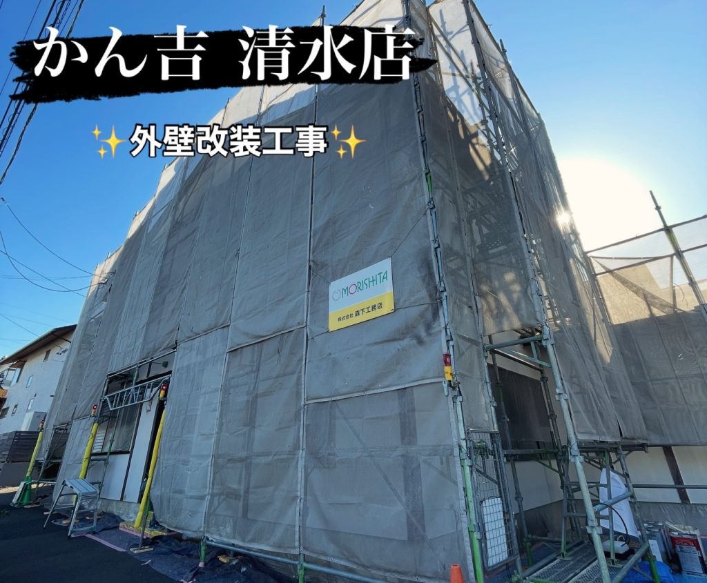 炭焼鰻「かん吉 清水店」外壁改装工事! 2026年2月20日 最終更新日時 : 2026年2月20日 達也 現在「かん吉 清水店」様にて、外壁改装工事を実施しています🌟近日足場が取れる予定です。完成が楽しみです! 工事中で足場が掛かっていますが、お店は営業中です!私もウナギが大好きなので、食べに行ってきます! 傾斜地の道路沿いにお店があります [かん吉 清水店 公式HP] 美味しそう、、、(;゚д゚)